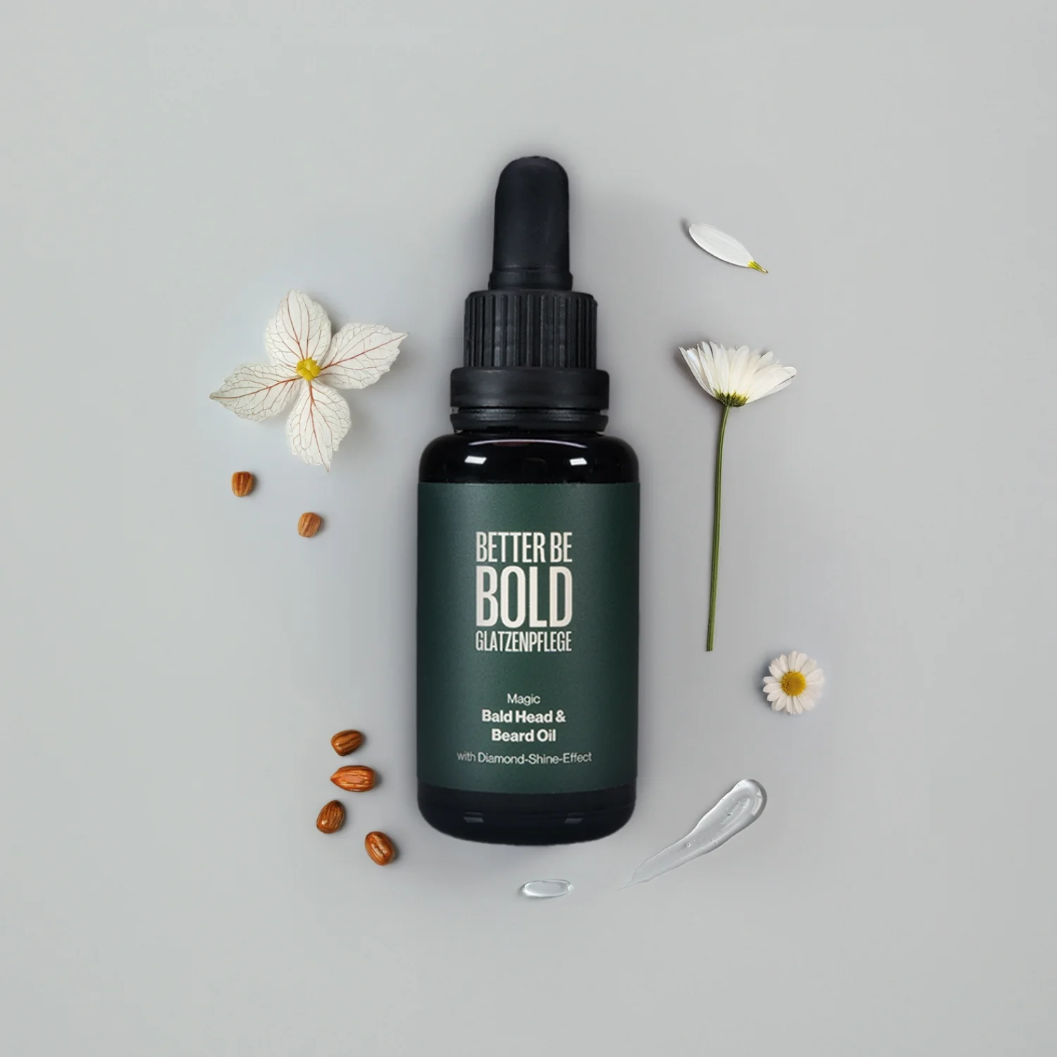 Magic Bald Head & Beard Oil is een multifunctionele verzorgingsolie van 30 ml, speciaal ontwikkeld voor zowel een gladgeschoren hoofd als een volle baard. De blend bevat argan-, jojoba- en castorolie, aangevuld met vitamine E voor langdurige hydratatie en bescherming tegen irritatie. Deze niet-vette formule bevordert een soepele huid, vermindert droogheid en geeft de baard een gezonde glans. De geur is fris-citrusachtig met een subtiele houtachtige ondertoon citeturn0search1turn0search6.