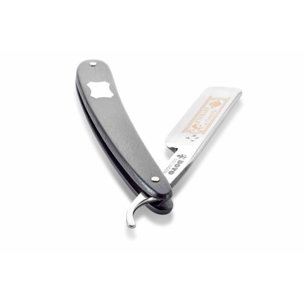 Dovo open scheermes "Astrale". Het mes heeft een 5/8 inch koolstofstalen blad met ronde punt. Geheel met het hand vervaardigt door de beste vaklieden van Dovo in Solingen, de bakermat van het open scheermes. Dit staat garant voor een top scheermes. Het lemmet is voorzien van een mooie ets en een goud afgewerkte rug. Het heft is vervaardigt van Ebbenhout. Materiaal: Koolstofstaal - Hoogte lemmet: 5/8" - Blad: Half hollow - Punt: Rond