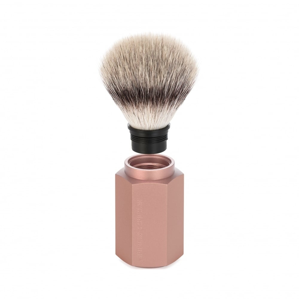 Deze luxe scheerkwast uit de Hexagon-serie heeft een hoogwaardige Silvertip Fibre® borstelkop die zachtheid en optimale schuimvorming garandeert. Geanodiseerd aluminium handgreep in Sunrise-kleur ligt comfortabel in de hand en zorgt voor stabiliteit tijdens het scheren. Dankzij de dichte vezels neemt de borstel vocht goed op, wat bijdraagt aan een rijk, romig schuim en een glad resultaat.