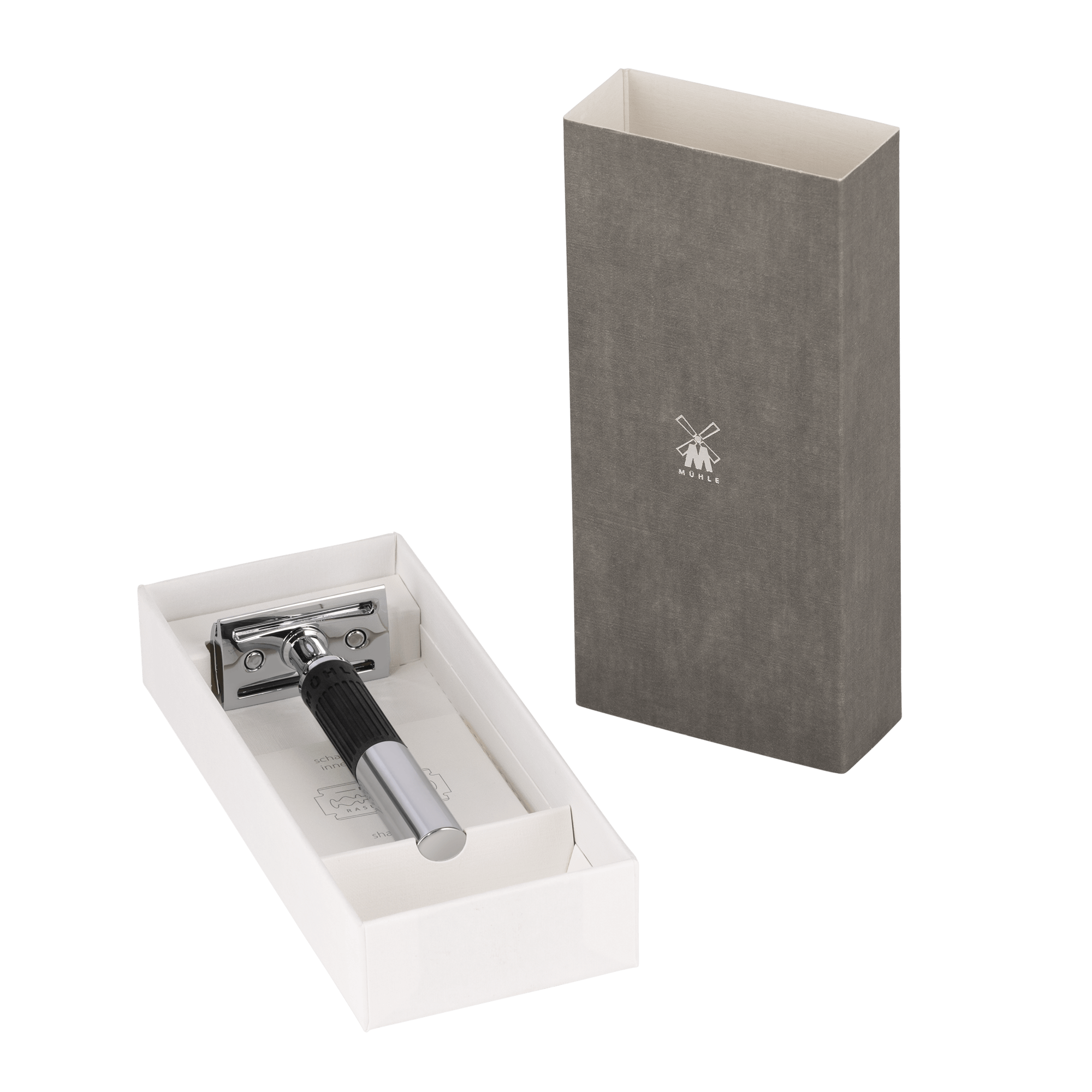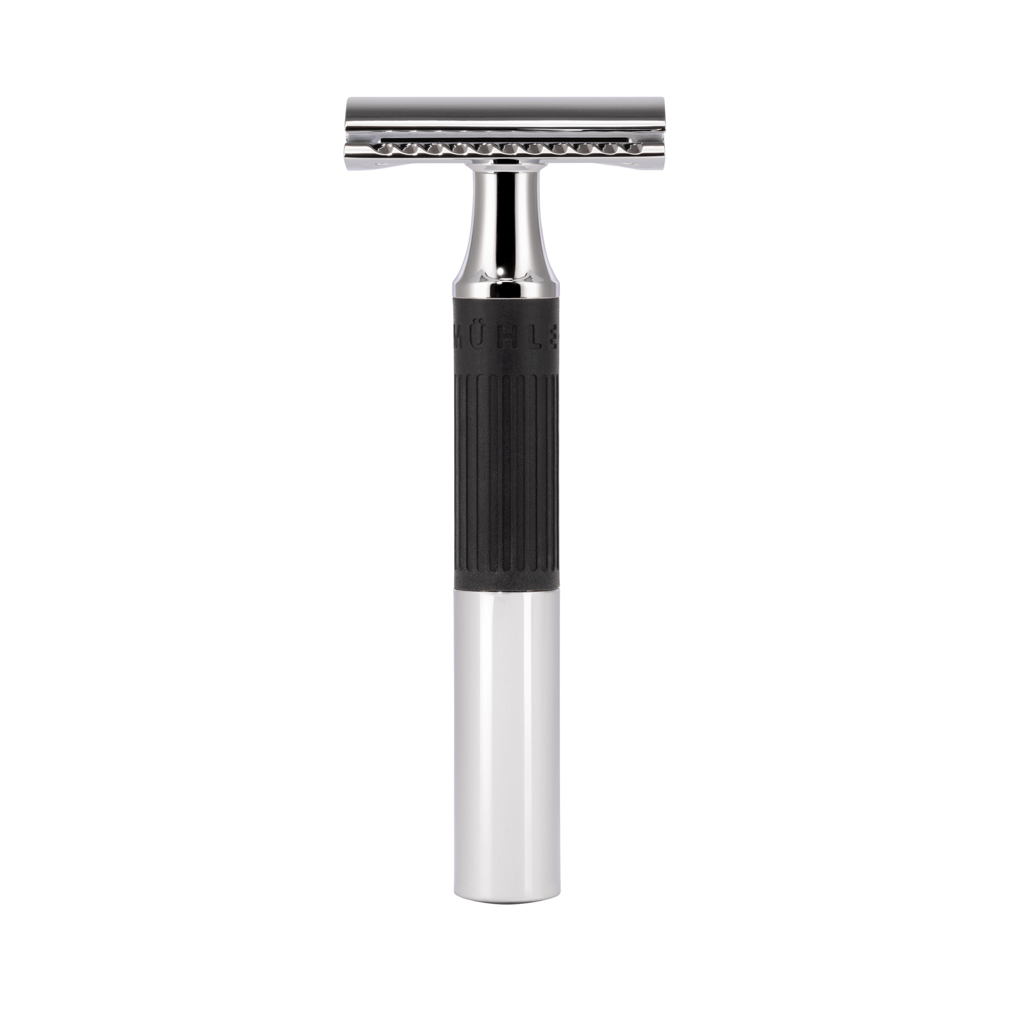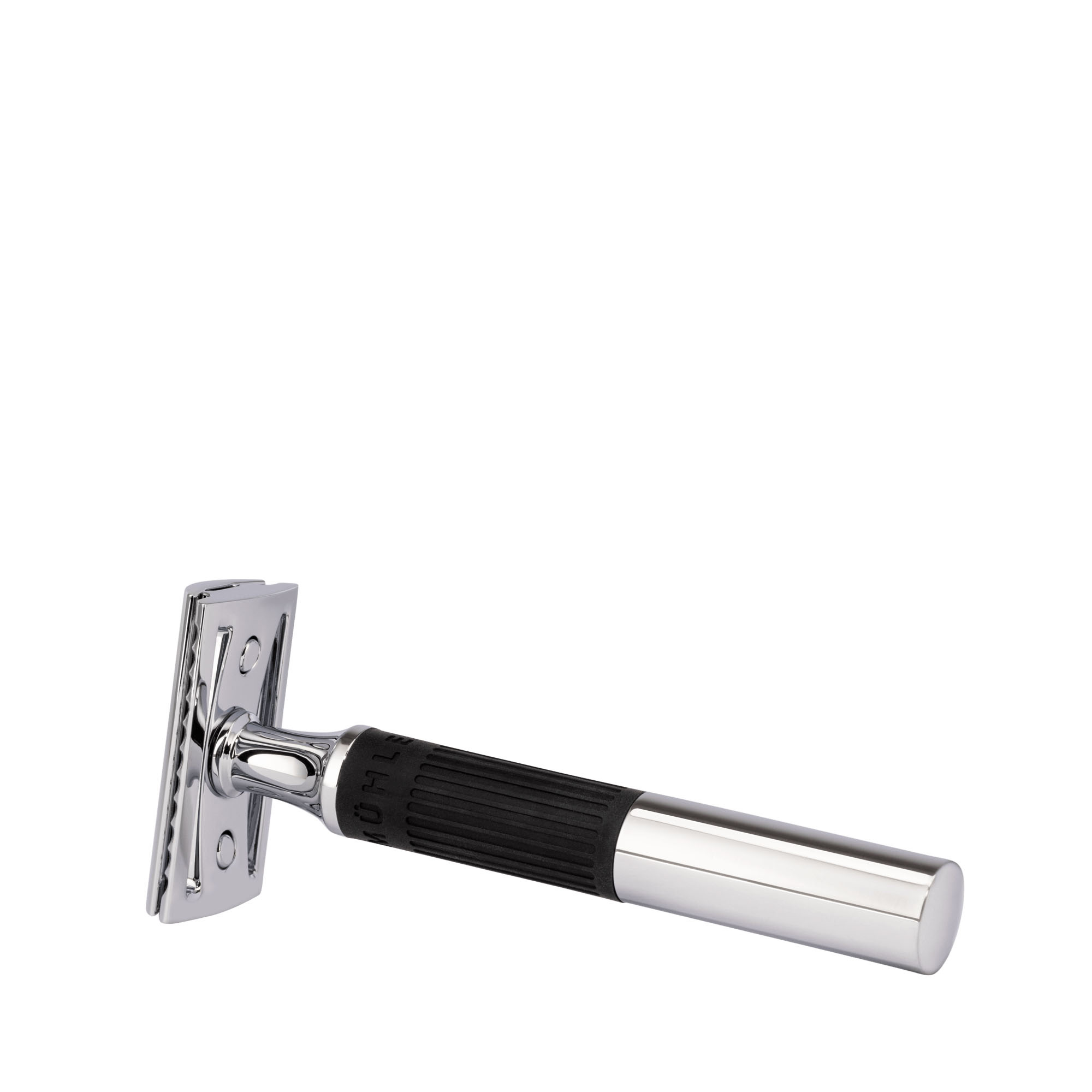 Safety razor uit de NEO-serie verchroomd met soft grip.